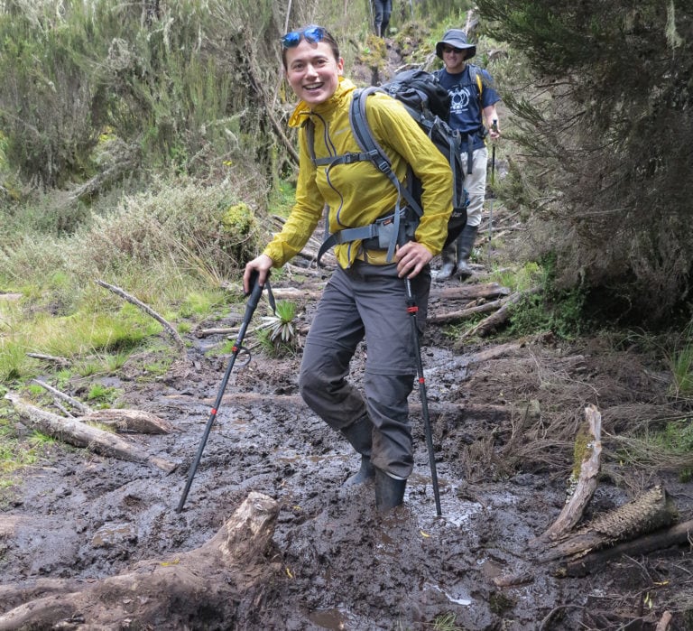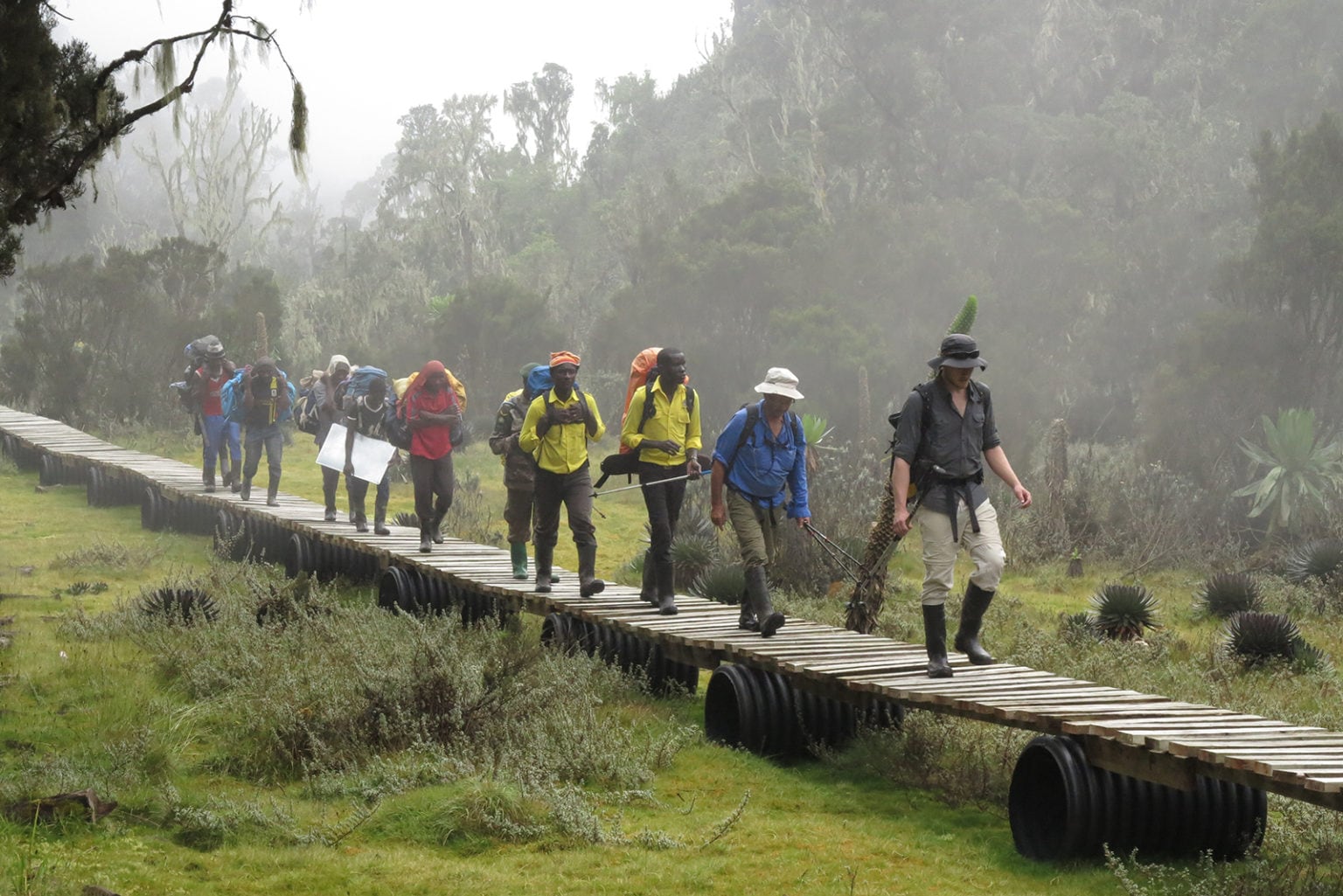 Ας ξεκαθαρίσουμε πρώτα το εξής: o ορεινός όγκος του Rwenzori είναι λασπώδης. Ανεξέλεγκτα, αδιάκοπα λασπώδης. Το πρώτο πρωινό, προσφέρεται στον κάθε πεζοπόρο που θα τον διασχίσει ένα ζευγάρι ψηλών γαλοτσών (μαζί με μια ομπρέλα και ένα θερμός), με τις οποίες θα ζήσει αρκετά περισσότερη δράση από ότι με τα ορειβατικά του μποτάκια. Για ατελείωτες μέρες, το μονοπάτι είναι πνιγμένο κάτω από μισό μέτρο «ασυμβίβαστης» γλοιώδους λάσπης. Αυτό είναι το είδος ενός σχιζοφρενικού βάλτου που έχει περισσότερη και δυνατότερη προσωπικότητα από μια ομάδα εννέα σκληραγωγημένων πεζοπόρων, μαζί. Εκεί υπάρχουν πιθανώς μη καταγεγραμμένα μέχρι στιγμής είδη λάσπης που δεν υπάρχουν πουθενά αλλού στη Γη. Πολλές φορές κορμοί και στοίβες από κλαδιά δέντρων τους βοηθούν να αποφεύγουν τις μεγάλες δυσδιάκριτες τρύπες στο έδαφος που τελικά ονόμασαν «η πύλη του Underbog», ή «η φονική τρύπα του Franklin».